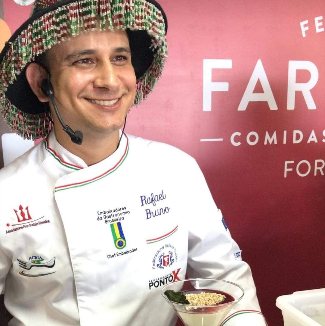 Chef Rafael Bruno é proprietário e Chefe de Cozinha do renomado Restaurante Ponto X e o Café do Vale em Pedreiras-Ma, onde Começou sua Carreira em 2005 .Foi premiado em 2018 na categoria estadual onde recebeu o título de embaixador da gastronomia maranhense, agora indicado a categoria nacional. Gastrólogo e Mestre em Educação, apaixonado pelas politicas sociais, usa a gastronomia como ferramenta para fomentar a inclusão social de deficientes auditivos.