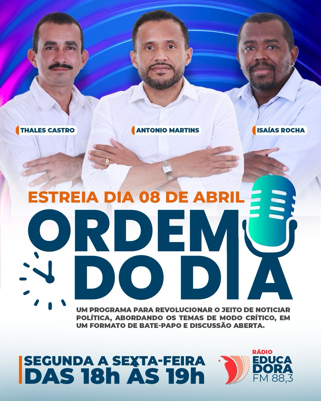 Estreia nesta terça-feira (8) o programa Ordem do Dia, comandado por Isaías Rocha, Antônio Martins e Thales Castro.